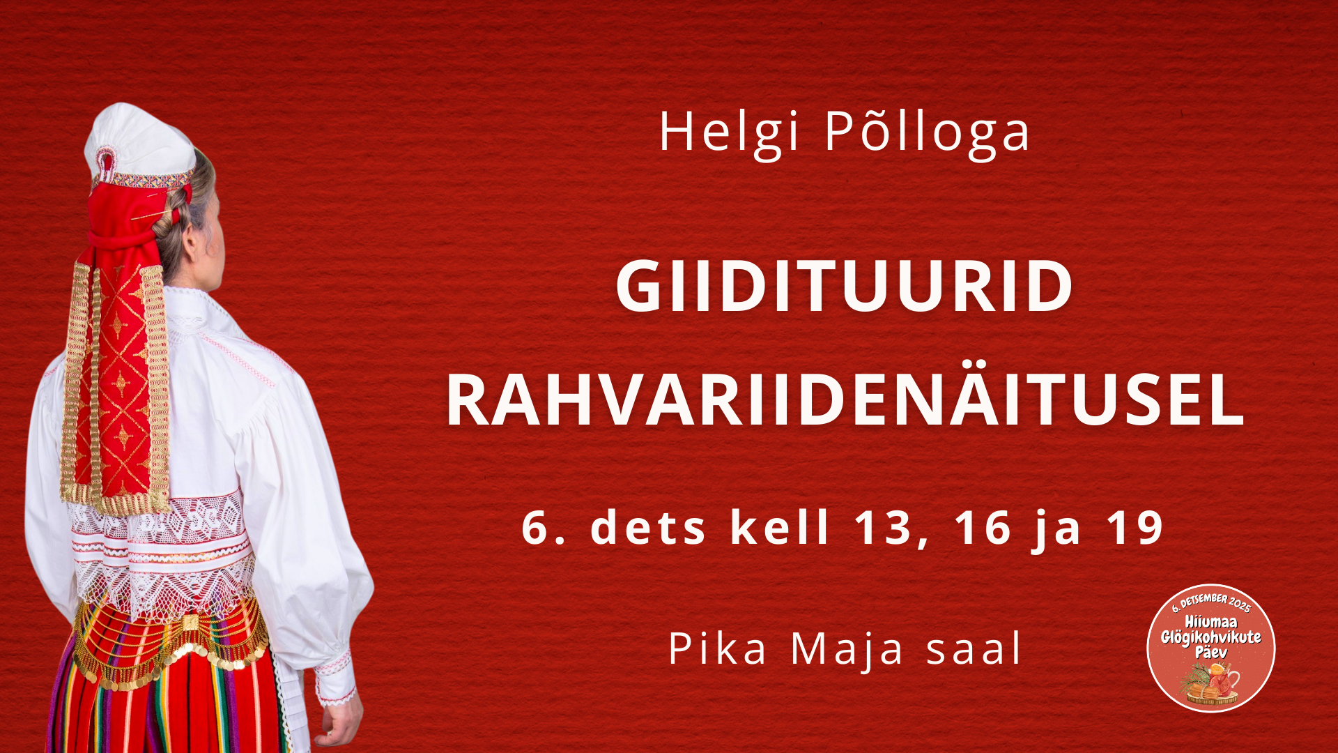 Hiiumaa Muuseumi glögikohvik Litter 6. detsembril muutub Pika Maja saal Kärdla südames hubaseks ja ainukordseks glögikohvikuks. Kohvikus Litter ootavad Hiiumaa Pillisõprade Seltsi jõulukontserdid, giidituurid rahvariidenäitusel koos Helgi Põlloga ja töötoad nii suurtele kui väikestele. Kohvik Litter on saanud inspiratsiooni Hiiumaa rahvariideaastast. Milliseid maitseid pakume? Kuna paljud teist armastavad muuseumi pannist odrarooga, siis sel korral on roog menüüs kindlal kohal koos hõrgu õllese jõulukapsaga. Glögist teeme lisaks traditsioonilisele soojale joogile ka glögitarretist ning jääglögi. Šokolaadi armastajatele valmistame kuuma kakaod koos jahutava lumemütsiga. Kohviku kookide valik tuleb taaskord rikkalik ja maitseelamusi pakkuv. Pane tähele! Kõik kohviku tegevused on sel korral tubased. Tule koos lähedastega sooja ja hubast jõulumeeleolu nautima! AJAKAVA: 11.00 avamine 11.00-19.00 avatud töötoad 13.00 giidituur rahvariidenäitusel 14.00 Hiiumaa Pillisõprade Seltsi jõulukontsert 16.00 giidituur rahvariidenäitusel 18.00 Hiiumaa Pillisõprade Seltsi jõulukontsert 19.00 giidituur rahvariidenäitusel 21.00 glögikohvik Litter suunatakse ajalukku * Rahvariidenäituse giidituuridel osalemine on muuseumipiletiga (täispilet 6€, sooduspilet 5€). Giidituure viib läbi “Hiiumaa rahvariiete ilu ja võlu” näituse kuraator Helgi Põllo. Hiiumaa rahvariiete näitus on Pikas Majas avatud kuni 17.01.2026. Vaata kõiki muuseumi üritusi