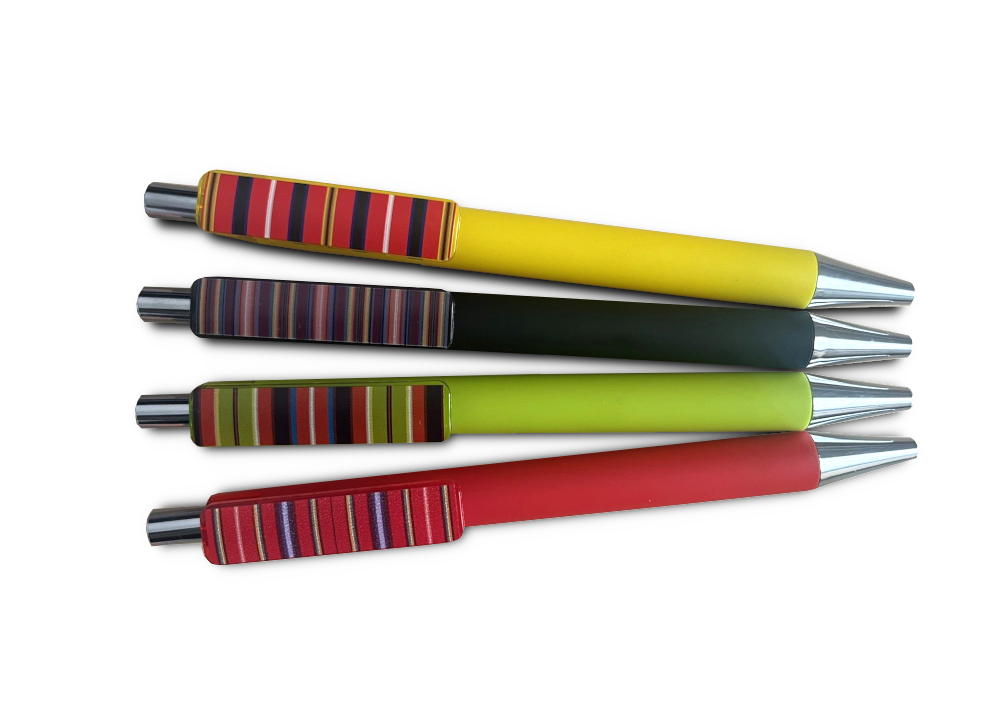 Hiiumaa nelja kihelkonna seelikutriipudega pastapliiatsid.